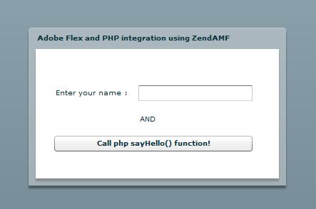 <mx:Panel width="361" height="222" layout="absolute" title="Adobe Flex and PHP integration using ZendAMF" horizontalCenter="0" verticalCenter="0">
